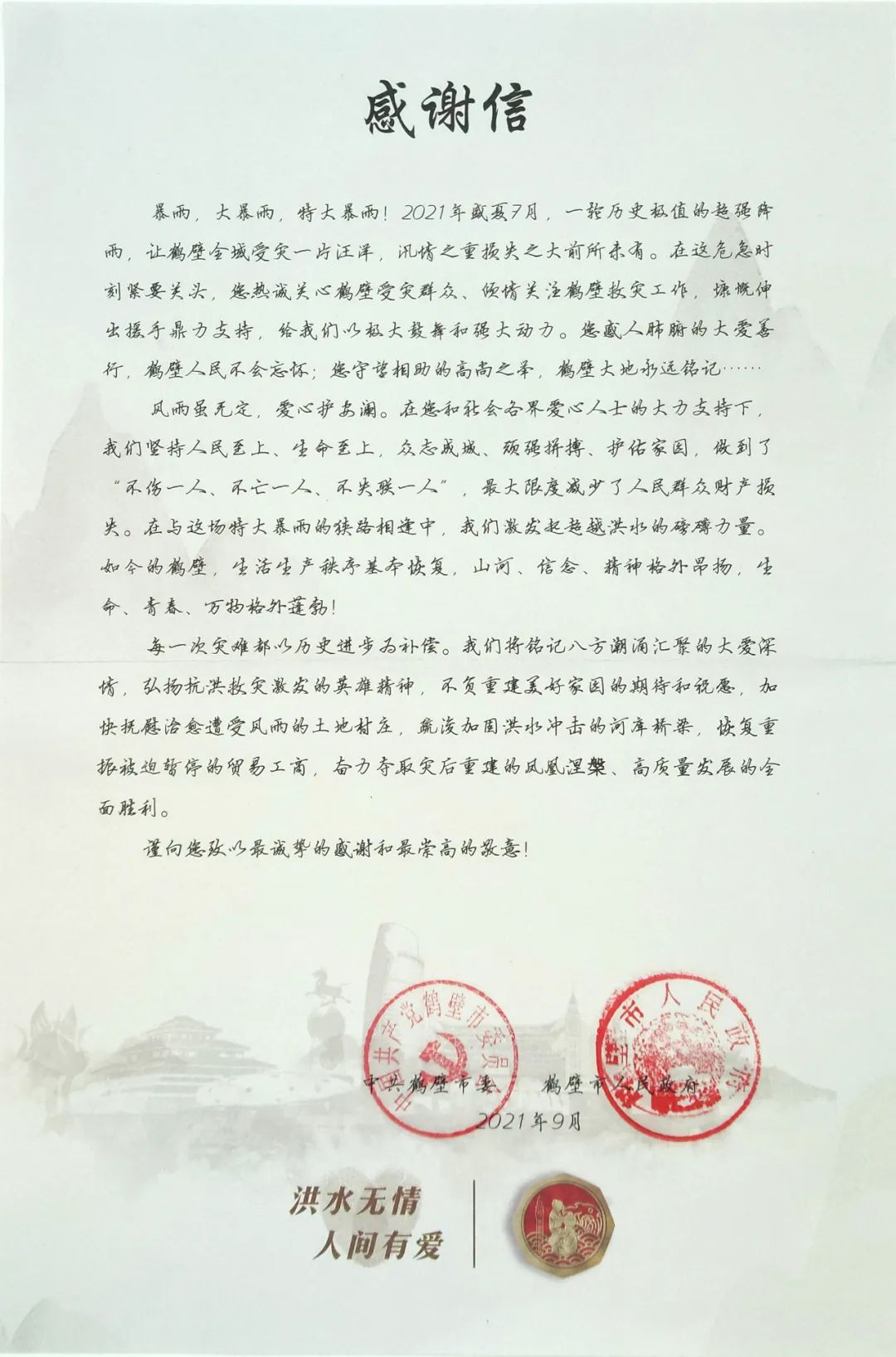 爱有回响,善有回音。近日,河南省华夏德门慈善基金会理事长王新瑞先生获得了九三学社河南省委员会颁发的“2021年度防汛救灾特别贡献奖”。